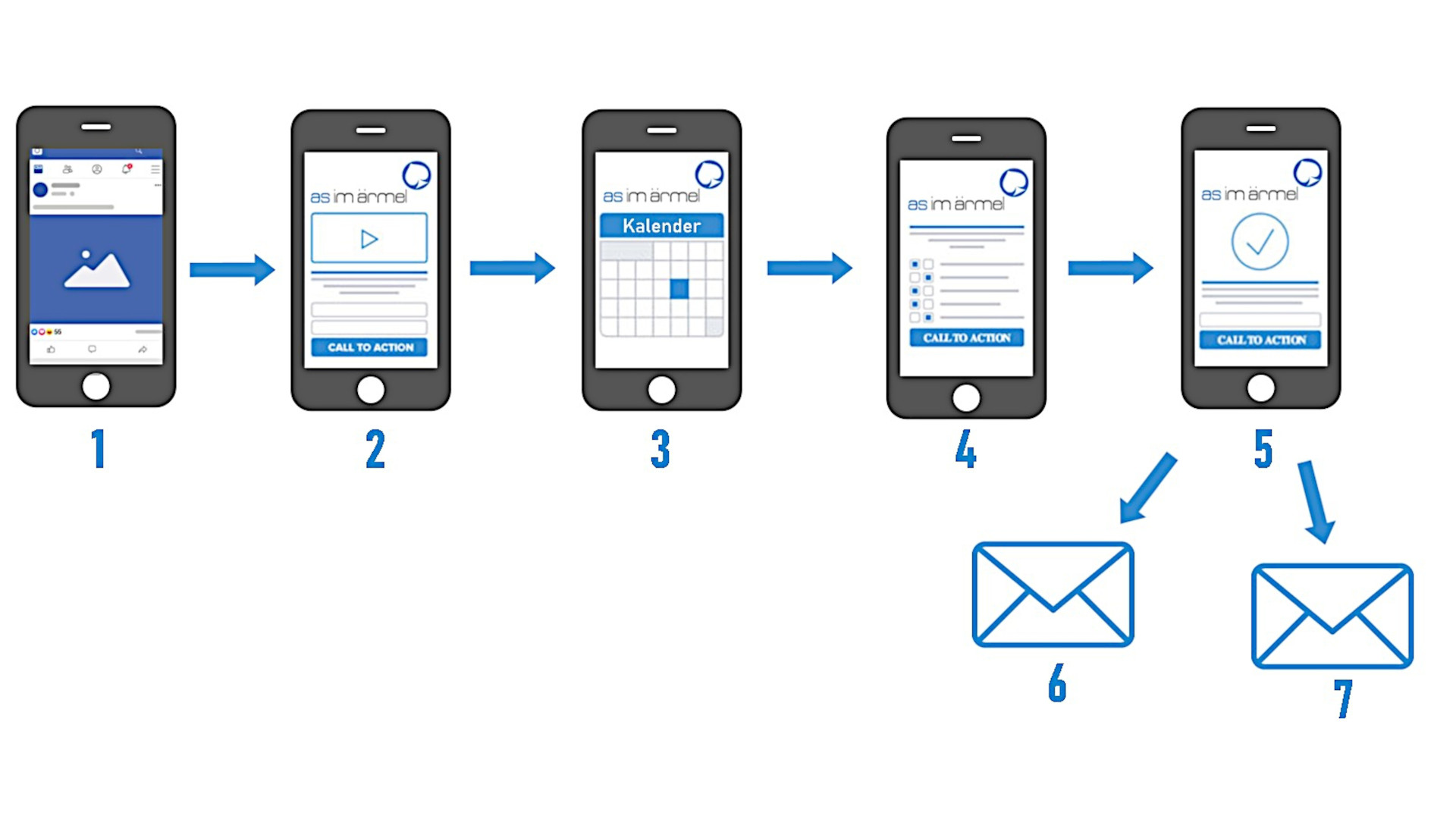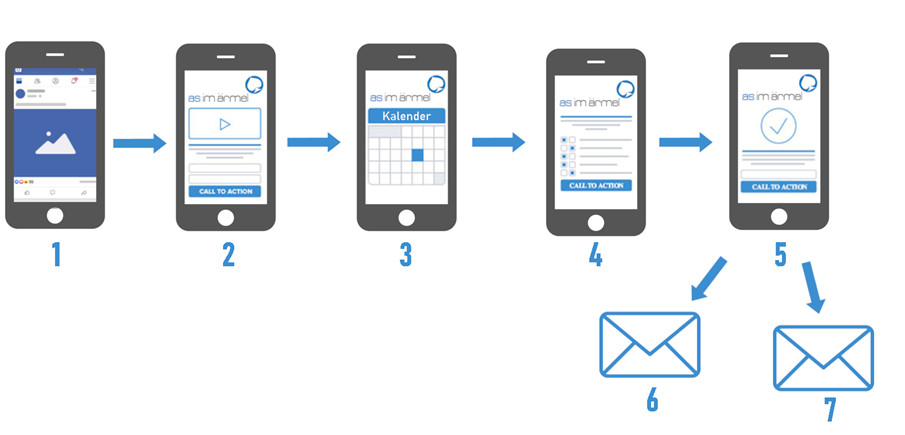 Nehmen wir einen Termin-Funnel, welcher darauf abzielt, dass (potentielle) Kunden von sich aus und auf Basis eines automatisierten Prozesses einen Termin mit Ihnen vereinbaren..