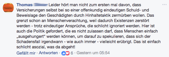 Nach allem, was man aus der Außenwahrnehmung erkennen kann, scheint die Empörung auf der inhaltlichen Ebene durchaus berechtigt zu sein. Ohne sämtliche Informationen kann hierzu selbstverständlich keine abschließende Aussage getroffen werden. Allerdings ist dies für alles weitere auch egal, denn mir geht es im folgenden, um die gesamte Außendarstellung, insbesondere die Social Media Kommunikation, welche als ein Best Practice Beispiel für ein Worst Case Szenario in der Assekuranz gelten kann.