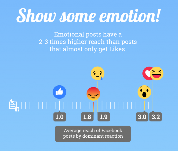 Ein zentraler Faktor viraler Inhalte ist, dass sie Emotionen auslösen. Das bedeutet, Sie müssen emotionale Inhalte erstellen. Weswegen Sie bei der Content Kreation sich nicht nur fragen müssen: Welche Aussage vermittelt mein Inhalt, sondern auch, welches Gefühl löst er aus. Ist es Freude, Lachen, Staunen, Trauer oder Wut? Facebook hat nicht zufällig neben dem Like, auch die entsprechenden Emojis eingeführt!