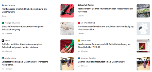 Noch mehr als die Social Media Interaktionen zeigt allerdings der mediale, virale Widerhall, dass der Krankenkasse ein wahrer Scoop gelungen ist. Denn (wahrscheinlich auch aufgrund des Sommerloches) nahezu die gesamte deutschsprachigen Presselandschaft greift es auf und zwar durchweg positiv. Was sicherlich das Budget jeder Krankenkasse sprengen würde, wenn man eine identische mediale Präsenz durch Anzeigenschaltung hätte erreichen wollte.